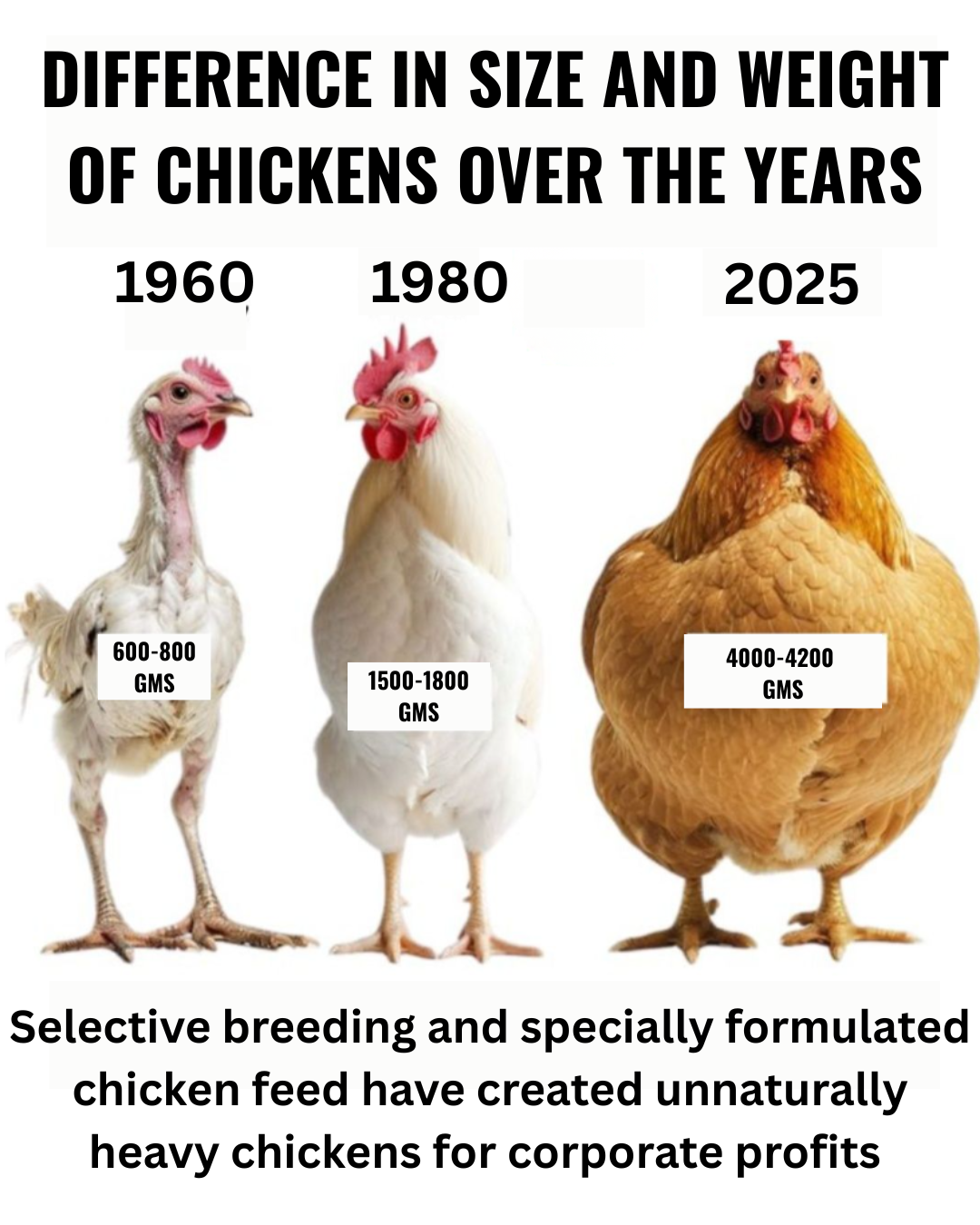 Because the global poultry market is worth hundreds of billions of dollars these companies tightly protect their genetic IP to continue their monopoly and accumulate huge profits. The Indian poultry market was worth around 3.5 lakh crore rupees in 2023 and is estimated to rise to 4 lakh crore rupees by 2027, growing at a rate of 6% per annum. Farmers and hatcheries have no choice but to keep buying chicks or licensed parent stock because independent, reliable reproduction of commercial broilers is effectively impossible.